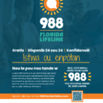 General 988 Florida Lifeline Poster – Haitian Creole Educational posters to promote 988 Florida Lifeline. Translated in Haitian Creole.