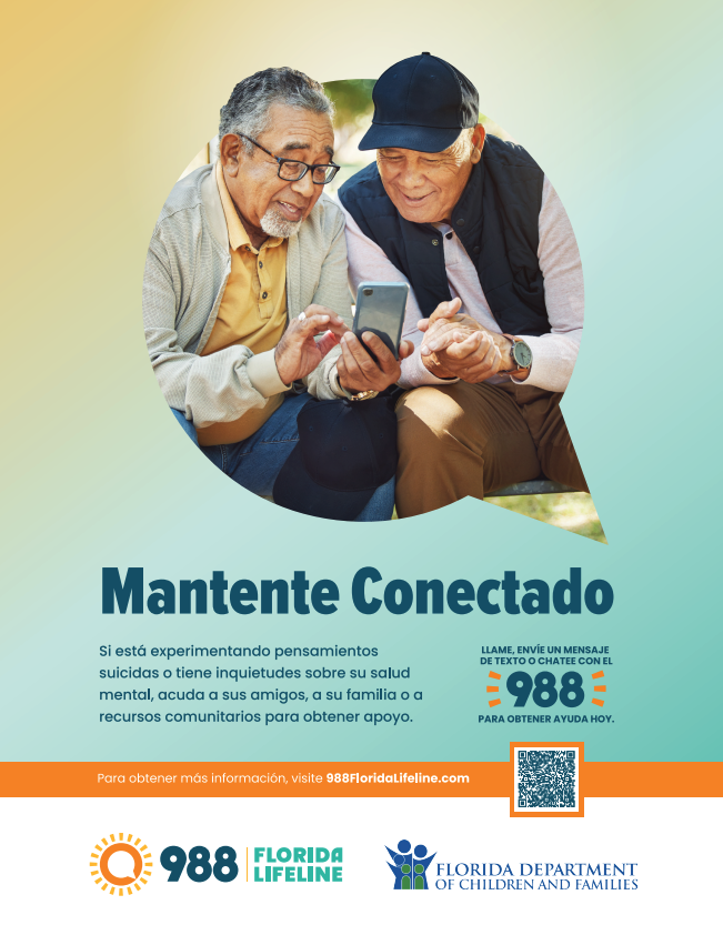 Educational posters to promote 988 Florida Lifeline. Translated in Spanish.
